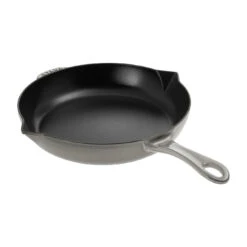 Este grill redondo mide 22 cm de diámetro y 29 cm si contamos el mango; tiene una altura de 3,5 cm. El hierro colado es duradero, resistente a las rayaduras y fácil de limpiar y gracias a su sencilla utilización es adecuado por igual para cocineros principiantes y profesionales. Con este grill de la serie de grills y parrillas podrá preparar rápidamente jugosos filetes o saludables verduras asadas al estilo mediterráneo y disfrutarlas con tranquilidad.